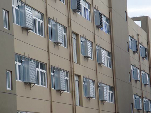 風(fēng)機主要由扇葉、電機、外框、護(hù)網(wǎng)、支撐架、百葉窗等部件組成,電機驅(qū)動扇葉產(chǎn)生氣流,活動百葉窗可按用戶需要配備,開機后百葉窗可自動開啟,停機時百葉窗自動閉合,以防室外灰塵、異物等進(jìn)入,亦可避免雨雪及倒風(fēng)的影響。
